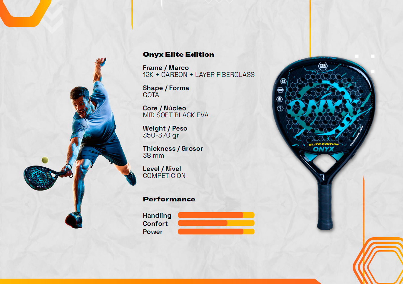 La Onyx Elite Edition ha sido creada para quienes entienden que el verdadero poder está en el control. Su diseño elegante y materiales de alto rendimiento permiten dirigir cada golpe con precisión milimétrica, manteniendo una sensación suave, estable y equilibrada durante todo el partido.